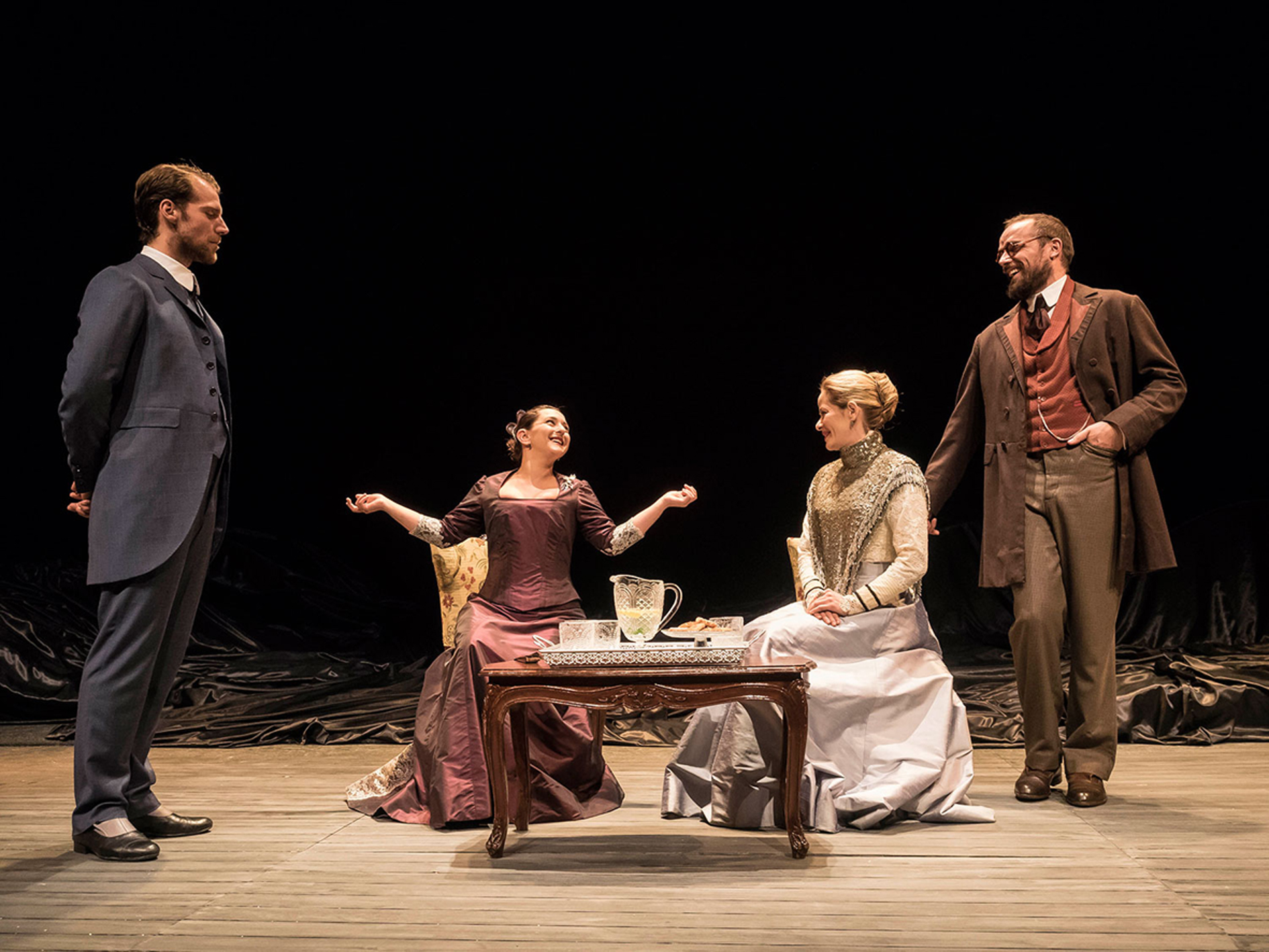 Se presenta un dilema siempre que asistimos a las adaptaciones de textos literarios y más si estas pertenecen a otro género (ya lo hemos visto con Los hermanos Karamázov). ¿Debemos juzgar la función como una obra auténtica, ajena a los presupuestos del autor o, inevitablemente, debemos comparar ambos hechos artísticos? Desde mi punto de vista, Pedro Víllora tiene todo el derecho a interpretar a Emilia Pardo Bazán como quiera y Luis Luque a dirigir la versión como estime oportuno, pero el espectador que se haya acercado a la novela Insolación (aunque habría que afirmar que más que novela es un «estudio episódico» ─según comentaba la novelista) observará que el realismo intimista con recursos naturalistas que la gallega pretendió desarrollar, empleando varios narradores que juegan a recrear la conciencia de la marquesa de Andrade, se convierte en escena en romanticismo tardío y en pudoroso recato. La trama es de lo más sencilla. La susodicha, joven viuda residente en el Madrid de 1887, con ideas bastante avanzadas para la época, aunque, en el caso de la obra, destinadas únicamente a la disputa alegre en las tertulias de los salones aristocráticos, y católica de misa inapelable, se encuentra con el gaditano Diego Pacheco, un donjuán al que ha conocido la víspera en casa de la condesa de Sahagún. Ese encuentro y la posterior excursión a la pradera de san Isidro durante la romería, suponen todo un desafía moral, una experiencia erótica y, sobre todo, un conflicto interno para Asís. Lo demás consiste en resolver su comedura de cabeza y esto, sinceramente, no da para casi dos horas de duración. Lo que vemos en escena se aleja por la vía romántica (no hay más que fijarse en cómo se representa la borrachera de excitación de la marquesa, con esas lucecitas que bajan a modo de constelación de Casiopea) de lo que ocurre en el libro. La versión de Víllora suaviza el lenguaje, la profusión de regionalismos se reduce, el barroquismo de algunas expresiones se aplaca y la intensidad de las emociones tortuosas deriva en una especie de enamoramiento juvenil y alocado. Está claro que esta obra se puede representar con cuatro actores (como así ocurre), pero sería necesario insistir mucho más en la vertiente social, urbana y clasista. Falta llevar el jolgorio de la pradera a la viveza teatral. Si la Pardo Bazán dirige a sus protagonistas hasta allí es para que se codeen y se embarren con las clases populares e, incluso, con el hampa. Que Asís se atemorice con una pelea y se moleste por el agobio de las gitanas que se les acercan. El cometido de la autora es buscar el contraste, manifestar desde su ideología que esas gentes existen y que, ante ellos, la protagonista se siente distante y cohibida, aunque paradójicamente hubiera afirmado ideas políticas acerca de la igualdad. Su «insolación» es una mezcla de calor asfixiante, del vaivén de la marabunta de chulapos y chulapas, de su propia desubicación, del tintorro y, entre todo eso, del contacto carnal con un hombre que la ha subyugado. Creo que sin plasmar esa intensidad no se entiende auténticamente la esencia de la novela. Ya Émile Zola, uno de los principales maestros de Emilia Pardo Bazán, había publicado en 1875 La culpa del abate Mouret, en la que un clérigo también sufría en conciencia por su enamoramiento de una mujer y, también, desde un narrador intimista se expresaban las emociones que tal conflicto suponía para el personaje. Tampoco creo que la escenografía, a pesar de lo sugerente que resulta, sea la más adecuada para representar los entornos del río Manzanares o las calles de Madrid, demasiado simbolista y, mucho menos, si todo se plasma como en el atardecer infernal en el desierto de Mojave. Quizás la precariedad pueda justificar estas opciones estéticas. En lo que sí sobresale la función es en la actuación de sus intérpretes, principalmente María Adánez, a pesar de que cueste imaginársela tan sensiblera en las intenciones de la novelista, agarra con soltura su papel y se mueve por el escenario con la gracia que acostumbra, aportándole, en ciertos momentos, una leve picardía. Su partenaire, José Manuel Poga, destila desparpajo; de la misma forma que Pepa Rus, sobre todo cuando hace de criada y ventera. Finalmente, Chema León, como pretendiente excesivamente precavido, aporta un toque de seriedad y de visión intelectual que encuadra muy bien la obra, tanto al principio como al final. En definitiva, quienes hayan leído la novela se quedarán un tanto desengañados por el tono que el director le ha imprimido a la función (pensada en exceso para un amplio público), mientras que el resto se recrearán con los momentos álgidos de una historia de amor dentro de un contexto de costumbres opresivas.