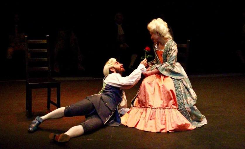 Regresar a los inicios es una inmejorable manera de reforzar los planteamientos estéticos que pusieron en marcha a Venezia Teatro y, tal y como han ido las cosas, además; sirve para enlazar lo último con lo primero. Puesto que, si hace unos meses en la versión de Casa de muñecas, el portazo de Ibsen hacía mutis; ahora lo tenemos de vuelta, trasplantado al siglo XVIII de Goldoni; y le viene estupendamente. Porque hay que reconocer que a nuestros ojos el didactismo de los ilustrados se nos queda corto. Como sabemos, las reglas del teatro neoclásico también se nos quedan algo escuetas; así el acontecimiento será tan concreto como la lección que se nos quiera impartir. Y, por lo tanto, para ganar nuestro interés, la mano del dramaturgista deberá poseer la habilidad de propiciar un brío y una astucia escénica adecuada. Y este es el gran mérito de José Gómez-Friha, quien ha dotado a su Beatrice (basada en La hostería de la posta) de la ironía precisa y de las intenciones políticas que doten a su protagonista del hálito libertario que ya tuvieron algunas de esas damas por aquellas épocas. El otro aspecto ineludible para el buen desarrollo de esta trama sencilla de enredos y fuerza dialéctica, es el comportamiento de los actores. El elenco funciona con verdadera sintonía y con un nivel magnífico. Los primeros en llegar a la hostería son el marqués Leonardo y el teniente Malpresti. Respectivamente, Rubén de Eguía encarna su personaje con su habitual disposición para combinar la seriedad con el gracejo y hasta la bufonada (como ya comprobamos en El juego del amor y del azar). Se gana nuestro favor en esa espléndida escena en la que manifiesta los gustos del futuro esposo de la condesa, que resulta ser él mismo. Lo del «master falsificato» (en referencia la expresidenta madrileña), cuando escenifica su predilección por el teatro, es una genialidad. En cuanto a Pablo Sevilla, la verdad es que va tomando tono según le llega la melopea. Es un fantástico fanfarrón, casi un libertino; aunque su chiste en el desenlace me parece que llega de una forma un tanto abrupta. Allí los recibe Andrés Requejo, que hace de camarero, y cumple esencialmente con ese pragmatismo y esa ductilidad para ganarse la confianza de todos con su encanto. Y como la acción debe ir al grano, las coincidencias han provocado que allí, incluso, se hospede la futura esposa del marqués a la que todavía no conoce. Marta Matute es una joven actriz que sigue ganando enteros y apostura; ya señalé sus virtudes en Yogur/Piano, y aquí vuelve a demostrar que no se arredra como figura principal. Ante todo, se gana (in absentia) el aplauso del público al terminar la función, con su actitud y su fuerza en el despojo de su personaje para proyectarla hasta el presente. Porque esta Beatrice no tiene por qué aguantar que su padre (Juanma Navas se mete en la piel del conde Roberto de Ripalunga y se expresa con donaire y con entereza burlona) le haya concertado un matrimonio con alguien que no había visto en su vida. Y que, a pesar de conocerlo, y de sentir atracción física e intelectual por él; ve que tampoco ha de aceptar sus celos, ni su cólera de macho que teme a cada instante por su honor. Por otra parte, tampoco tiene que aceptar la persecución de ese pretendiente que la sigue a todas partes como un perrito faldero, que es el barón Talismani, un David Alonso que sufre los golpes en su orgullo y en su rostro; no obstante, intenta reponerse adaptándose a cualquier atisbo de éxito. Como es bien sabido, los de Venezia procuran acentuar los detalles más que organizar una escenografía naturalista. Apenas unas sillas, una lámpara de techo, una rosa, un vestuario bastante ajustado a lo que pide la situación (todo un encarcelamiento para ella) con diversas pelucas y casacas; y, sobre todo, la presencia del músico de cámara Álvaro Llorente, que nos adentra en el ambiente necesario. Una pieza corta que nos remite de nuevo a Goldoni (ya lo visitaron con Los desvaríos del veraneo), donde el avance racionalista en lo moral, con esa defensa de las virtudes, no es suficiente para una dama que desea ir más allá. El conjunto del espectáculo, con un movimiento escénico notable y unas actuaciones sobresalientes, da como resultado un montaje divertido, interesante y de gran factura.