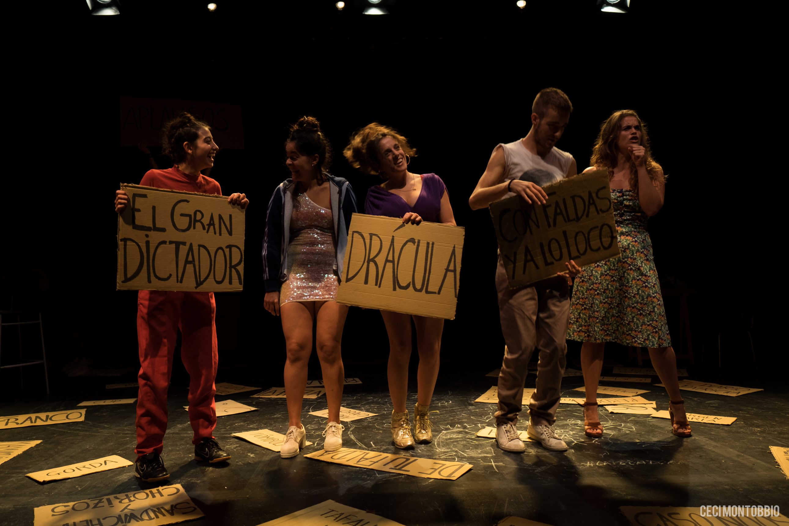 España es el país más fascista del universo. A veces dan ganas de no comentar la jugada para no dar pábulo al panfleto de turno; pero es que resulta que la obra ha tenido premio y que el mismísimo Teatro Español (dirigido por Carme Portaceli) le ha dado cabida en su programación (casi dos semanas en cartel). Llegados a este punto, de nada vale afirmar que es el primer montaje de la joven compañía José y sus hermanas. Se han apuntado de cabeza al tipo de teatro que ahora impera en la modernidad, que ya es moda, tendencia y que está más que visto. La performance postdramática resulta tan fácil de pergeñar como esos artefactos infames del arte conceptual a los que parece no exigírseles un cuidado técnico, un acabado minucioso. El engrudo, la mezcolanza, el pastiche o el pulp grumoso que rebosa insaciable. Crítica política grotesca y desbarre para epatar al personal. La trama para los despistados ―observé muchos biempensantes veinteañeros que no dudaron en ponerse en pie al final― es extraordinaria. Tras un prólogo que aventura una especie de discurso de biopolítica foucaultiana sobre la arquitectura despampanante del Institut del Teatre en Barcelona, donde han estudiado los componentes del elenco, y las supuestas elucubraciones entre fantasmagóricas, satíricas y hasta borgianas sobre la posibilidad de que Franco esté enterrado en otro lugar; y otros aspectos sobre las fosas de la dictadura, la tesis queda clara: «Nadie sobrevive a un cáncer de 40 años». Los demás países sí han podido sobreponerse, ya que fue mucho menos tiempo. Y total, por un Holocausto aquí, y un genocidio allá, unos cuantos millones de muertos arriba o abajo, tampoco es para tanto. Lo grave es Franco. Y ahora, en España (es raro que nunca digan Estado español), todo es Franco, y fascismo, mucho fascismo. Y Lorca, porque Lorca fue un mártir, y es un santo porque fue un gran escritor que en la actualidad seguimos leyendo. Y un gran dramaturgo del se representan sus obras sin parar. Y la Transición es la canción de Cuéntame y una niña montando en bicicleta. Y el capitalismo, claro. Y «nosotras» y «vosotras» (ya saben, el heteropatriarcado). Y, por supuesto, lecciones de historia ―muchas de ellas con la ridícula soberbia similar al «#Millennialsdescubren»―. El resto estamos a que nos enseñen qué ha pasado; ya que no sabíamos nada. Entre datos históricos que a todos nos deberían sonrojar ―eso es evidente―, la perspectiva sesgada, pueril y torticera ―no falta la parodia de un concurso televisivo para que averigüemos quién ha dicho alguna frase de esas que nos demuestran que, desde luego, continuamos conviviendo con auténticos retrógrados y nostálgicos― rompe con la oportunidad de aportar una gran denuncia sobre nuestros males. Además, se adereza el espectáculo con ciertas sátiras al mundo rural, a la falta de educación, al cazurrismo de los gritos y de los chismes a voces que rezuman un clasismo insoportable (la charanga y la pandereta. Cómo no). Salpimentado con flamenco y con la copla más folclórica de nuestro país. No obstante, como estos montajes necesitan ser calificados de rompedores y han de mezclar lo inmiscible, el reggaetón irrumpe irónicamente. La falacia de tomar la parte por el todo. La retahíla de la sinécdoque. Si el espectador está suficientemente atento ―y lo ha tenido que estar durante estos últimos años―; la proclama que recibimos en el teatro es exactamente la misma que llevamos escuchando del separatismo catalán (al que aquí no se menciona; puesto que no se reconoce como fascismo. Aunque lo sea de primera categoría). El «toda España es fascista» y nos tenemos que marchar. «España no es una democracia, es un estado totalitario». «Hemos sido invadidos por andaluces, extremeños y murcianos». Por eso, en un contexto así, no hacer una lectura de la performance al albur de los acontecimientos es imposible. Insisto en que el tema del franquismo requiere un resarcimiento absolutamente inequívoco con las víctimas y que ya está llegando muy tarde. Pero hacerlo así es una paradoja mortífera. Por otro lado, es de justicia reconocer que el elenco posee dotes y desparpajo. Francesc Cuéllar (aunque le toque hablar ridículamente en femenino) comanda gran parte de la narración. El tipo se maneja con apostura sobre las tablas y discurre con convencimiento. También encontramos grandes capacidades artísticas en la gestualidad y en el baile de Marta Díez; o a la hora de cantar en Glòria Ribera (fuerte carácter y energía sobre el escenario) o en la sensibilidad final de Carme González. Muy entregada, sobre todo al principio, Gemma Polo, junto a su compañero Alejandro Curiel (su exigencia en lo performativo desde el cuerpo es mayor que en el resto). E, igualmente, Carolina Manero. En el sentido de la soltura, del gamberrismo imprescindible en aquellos que quieren dar un buen aldabonazo dramatúrgico desde el inicio, es palpable que José y sus hermanas tiene mimbres. Eso sí, la propuesta Los bancos regalan sandwicheras y chorizos viene cargada con unos textos de Silvia Ferrando que me resultan en su síntesis y en su intención perversos por su sesgo. Ya sabemos que la solución a todo esto es la «Revolución de las sonrisas».