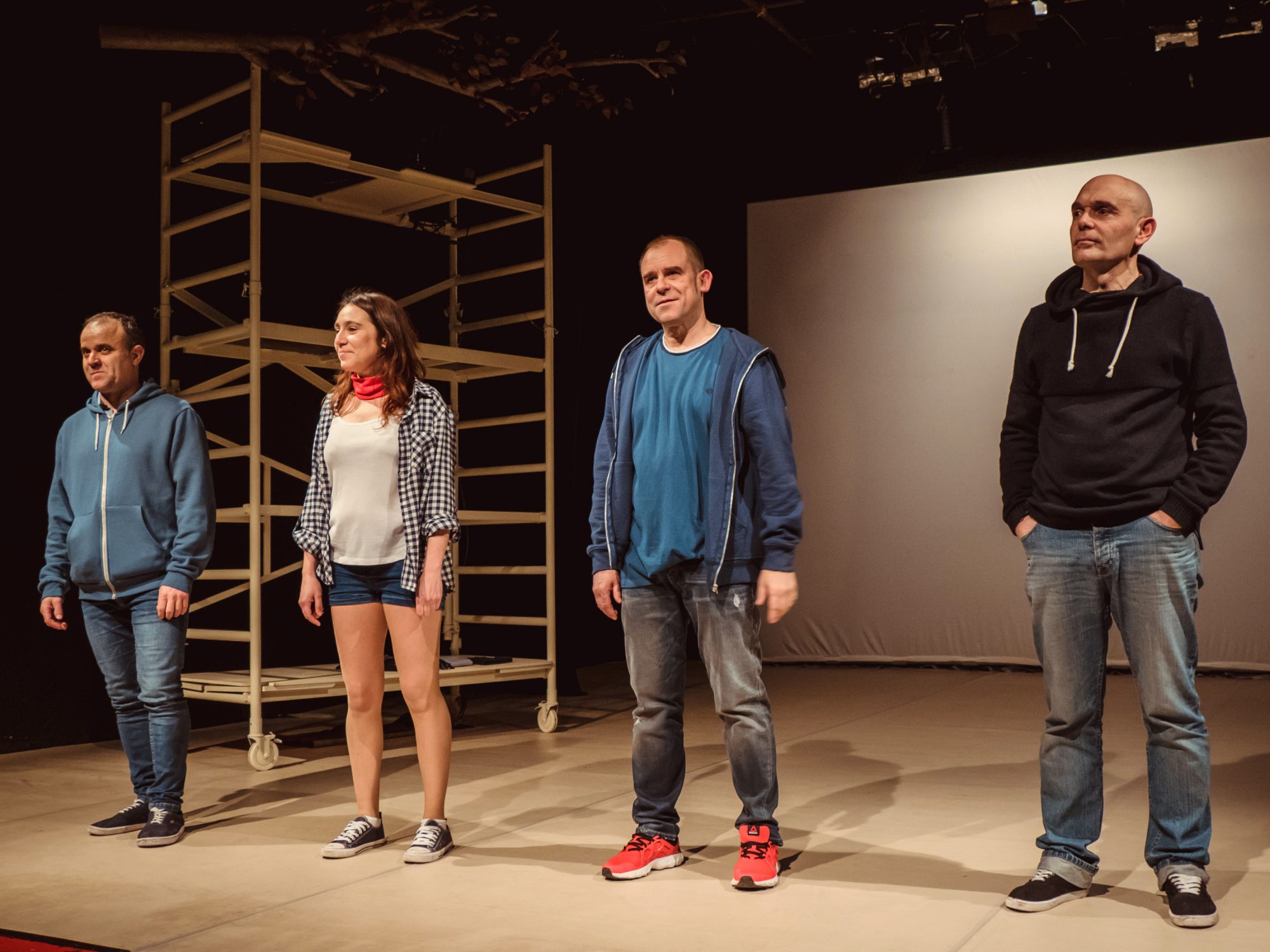 La acentuación radical que propone el libro de Janne Teller, publicado en el 2000 ―después fue prohibido y ahora es lectura obligatoria en muchos institutos―, es una vara de medir ineludible para capturar la sociedad de nuestro tiempo. Aunque los protagonistas son adolescentes ―y ellos mismos pueden y deben leerlo―, el público objetivo es amplísimo (o, quizás, todo lo contrario); pues se puede comprender asumiendo que se vertebra desde diferentes capas. La primera es la filosófica, más concretamente desde la corriente del nihilismo con desembocadura en el existencialismo (reconocemos a Kierkegaard, Nietzsche; pero también a Camus). Que la autora sea danesa y que sus compatriotas se espantaran con su propuesta, no es un dato baladí. La religión protestante potencia más el individualismo y este propicia un cuestionamiento de la propia existencia cuando flaquea la fe. «Dios ha muerto», según la sentencia de Dostoievski en Los hermanos Karamazov, por lo tanto: ¿cuál es el sentido de la vida? ¿Qué hacemos aquí? Curiosamente, en el Centro Conde Duque (con una sala de teatro dedicada fundamentalmente al teatro para jóvenes inquietos) se acaba de representar un montaje con líneas fundacionales parecidas (Un cine arde y diez personas arden). Por otra parte, la sociedad de bienestar está generando un tipo de colectividad repleta de paradojas: consumo masivo de gente que pretende ser distinta en la igualdad del grupo para buscar la permanente admiración (el narcisismo). Esta situación ha propiciado una ansiedad por ser reconocido socialmente (las redes están llevando esto hasta el paroxismo). Finalmente, no se puede permitir que las personas se detengan a reflexionar sobre su propia felicidad, sus propios deseos, sus propias decisiones; ya que esto podría propiciar un desánimo generalizado (de alguna manera ya pasa) que aumentara más el suicidio (el gran tabú de España con sus casi cuatro mil muertos al año), o que se redujera el gasto o que este fuera mucho más exigente. Y es que Antón, un muchacho de diecisiete años, de un instituto de Alcalá de Henares ―han adaptado la novela a través de un taller con adolescentes―, se ha subido a un ciruelo ―por un momento podríamos pensar en una especie de Simón el Estilita― para proclamar al mundo que: «Nada importa» y, por lo tanto, «no merece la pena hacer nada». En un principio, esto no pasa de una boutade; pero enseguida se convierte en una verdadera provocación. Porque si tiene razón, entonces el resto de amigos resultan estúpidos al esforzarse por hacer «algo». Y es más, serán todavía más estúpidos si no son capaces de encontrar alguna respuesta que contradiga la postura del protagonista. Es decir: «¿Qué sentido tiene la vida?», o, si se quiere, al modo de Albert Camus en El mito de Sísifo, cuando se plantea la cuestión del suicidio. ¿Por qué no nos suicidamos si la vida es absurda? Aquí puede afirmarse que el planteamiento es algo falaz en cuanto que es una discusión de bachilleres y que puede faltar la visión de los adultos. O sea, de individuos que han tenido experiencias suficientes como para hacer una valoración de pros y de contras. El caso es que el resto de la muchachada se pone manos a la obra para organizar lo que ellos llaman «el montón de significado», es decir, sacar a relucir todas esas cosas que tienen auténtico valor para ellos. A partir de aquí, digamos ―para no revelar demasiado―, que deriva en un modo de competición por ver quién llega más lejos. Lo importante es cómo todos esos conceptos a los que me refería al inicio se sintetizan en la fuerza del grupo frente al individuo incólume. Dadas las circunstancias, el espectador que conozca películas como La ola (también su versión teatral) y otras muchas donde la masa se transforma en un engrudo sin compasión ni raciocinio, comprenderá que el final se ajusta a la lógica (terrible). Nada, por lo tanto, es un texto inteligente y que podemos exprimir al máximo en nuestros días. La veterana compañía Ultramarinos de Lucas, con Marta Hurtado, Juan Monedero, Juan Berzal y Jorge Padín han realizado un trabajo algo austero en cuanto a la escenografía y el atractivo visual; pero bastante dinámica en la difícil presentación de tantos personajes secundarios. Siempre y cuando aceptemos que no todo el mundo entrará en ese esfuerzo imaginativo de hacer tomar a un grupo de adultos por unos chavales, por mucho que monten en bicicleta, se muevan con agilidad o bailen algún estilo moderno. En este sentido, es verdad que por momentos se tiende hacia una seriedad que no casa bien con la inmadurez de los chicos. De todas formas, encontramos una línea de continuidad recorre El lobo estepario o El guardián entre el centeno que tiene en Nada otro hito para remarcar la importancia del interrogatorio filosófico de nuestra propia existencia.