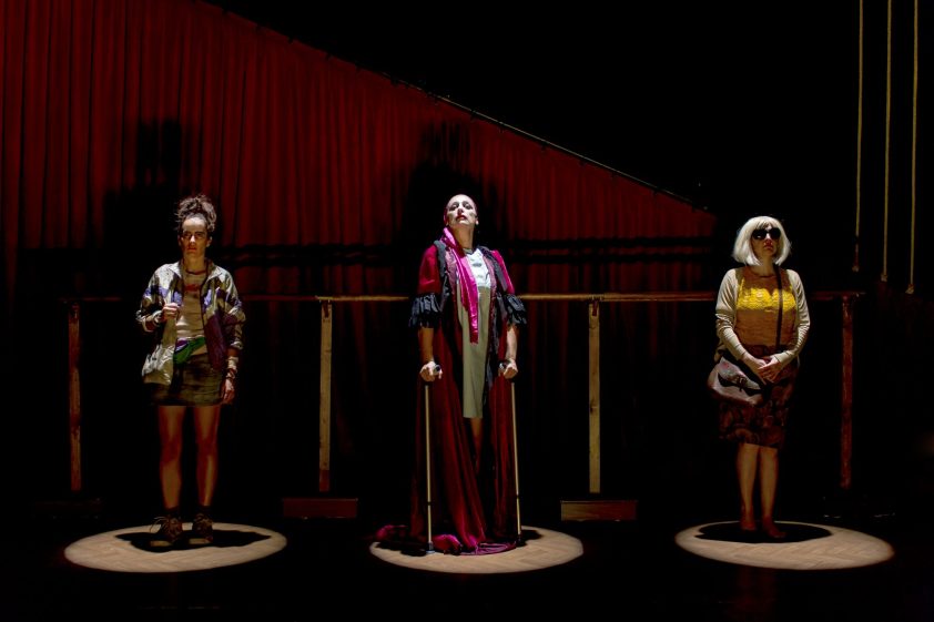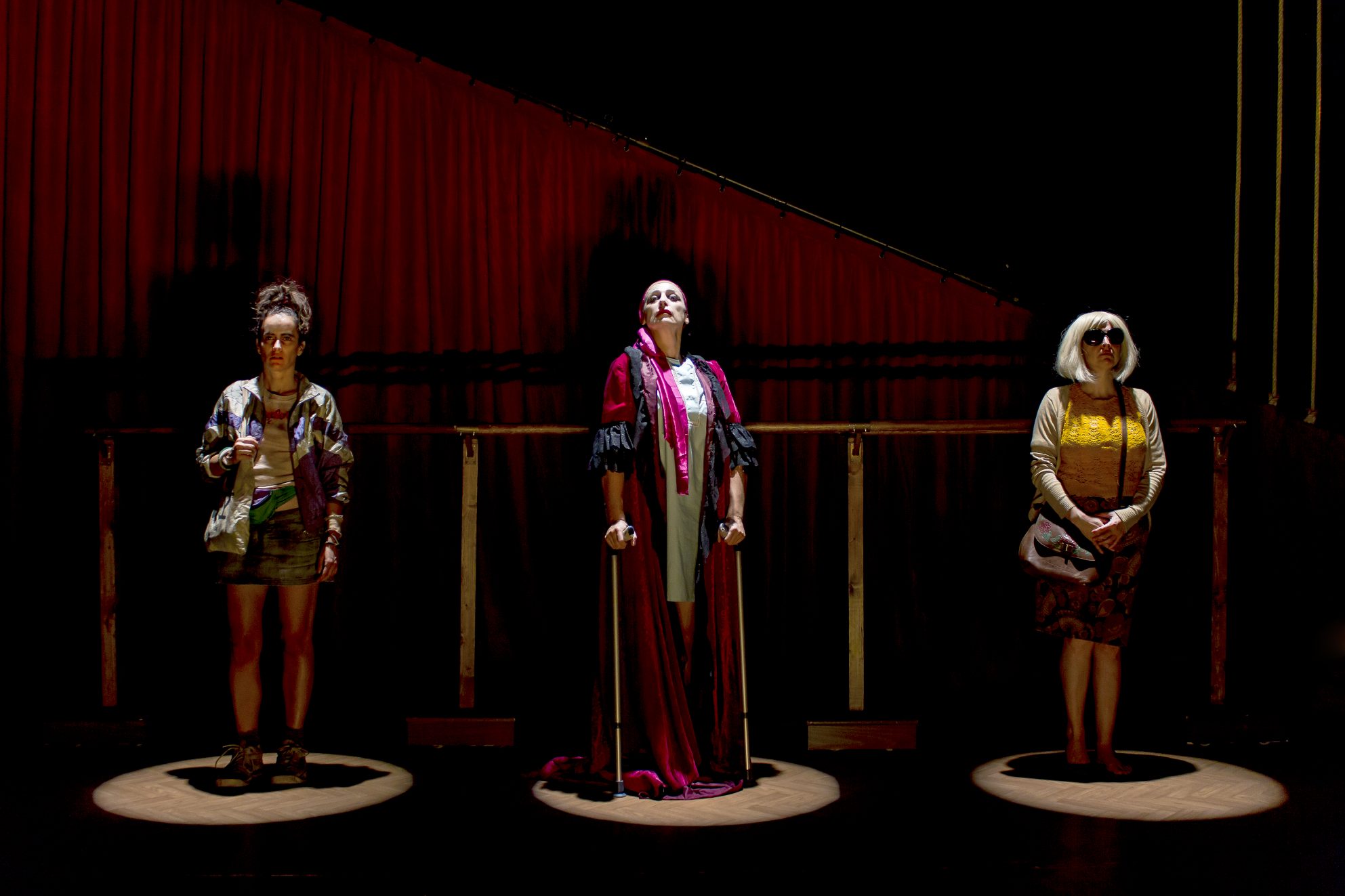 El éxito rotundo que José Troncoso ―y toda la compañía de La Estampida― ha cosechado con Las princesas del Pacífico situará a sus seguidores en la tesitura de la comparación y de las expectativas ávidas de ser cumplidas. Aunque Lo nunca visto es una obra de 2018, parece que es ahora cuando se lanza, auspiciada por los vientos favorables, gracias al Teatro Español. Nos adentramos en un estilo que se decanta todavía más por unos factores que de manera indefectible tenemos que identificar con La Zaranda. Su influencia parece demasiado cercana y el dramaturgo, de continuar por estos derroteros, podría caer en el manierismo o en ser un deudor apegado en demasía a sus maestros. La recursividad, la lentitud, la música sosteniendo la decrepitud (Bach) y los personajes marginales son elementos que se aúnan para esbozar una trama de trago acibarado. La cuestión es que una profesora de danza, responsable de una sala dedicada a baile para niños y niñas, está a punto de ser desahuciada y ha decidido marcharse por «la puerta grande». De alguna forma, se ha propuesto realizar un espectáculo ―se debe entender que vanguardista o extravagante para que lleve el título de Lo nunca visto; pero el texto es algo confuso y está poco cohesionado con lo que viene después― con sus antiguas alumnas. A la llamada únicamente acuden dos: una señora de verborrea insuperable cual disco rayado y una yonki vagabunda sin nada mejor que hacer. Que el resto del argumento sea una representación de sus miserias, del hijo con su colchoneta o de buscarse la vida por una barriada o de observar cómo tu escuelita se va al traste, es lo que no me encaja en ese pretendido marco metateatral de la creación de una obra extraordinaria. Desde cierto punto de vista poco importa esa instroducción, pues el asunto es que el retrato devastador queda expresado hasta el esperpento. Por supuesto, la gran baza son las tres actrices, que son unas fuera de serie, que demuestran una comicidad incuestionable y una disposición para lo estrafalario inmensa. Belén Ponce de León se presenta con unas muletas como una especie de caricatura de la bailarina Alicia Alonso. Desea llevar la voz cantante, ser la líder, la impulsora de una idea imposible para un elenco incapaz. Funciona excelentemente aunando disparidades y marcando los tiempos. Por su parte, Alicia Rodríguez es la que inicialmente más nos hace reír con sus guiños humorísticos más tradicionales, tópicos y folclóricos, con esas repeticiones interminables y esa inocencia de madre, de maruja que ya no puede más con su paciencia y que necesita colarse por la espita de la esperanza y de la alegría con este proyecto cuasifamiliar. Y Sofía, a la que encarna Ana Turpin, es un desfase grandioso. Es un personaje que no para de crecer, desde una tirantez intimidatoria hasta una energía rebosante como un estertor heroinómano. Su forzado acento gallego ofrece un juego de credibilidad e insensatez. Las tres forman un torbellino de torpezas concatenadas e irrisorias, de quieros y no puedo, de impotencias volcadas en la acción artística, de angosturas y de fracasos que en el expresionismo nos llevan a la risa; pero que son de una tristeza considerable. También tienen mucho de entrañable. Eso sí, el ansia por carcajearse que muchos espectadores (los fanes de la compañía) traen, puede que, en algún sentido, se vean algo decepcionados; porque, si bien es cierto que se dan varios puntos de ingenio y de retorcimiento lingüístico, con dichos y sarcasmos que sobrevienen de improviso, la verdad es que el dramatismo es más acentuado que la gracia. En cuanto a la propuesta escenográfica, la sencillez prima en los pocos elementos que ha dispuesto Juan Sebastián Domínguez, con una iluminación de Juanan Morales que profundiza, y mucho, en el alargamiento de las facciones, a veces, tenebrosas. En definitiva, José Troncoso mantiene esa estética de contraste tragicómico para adentrarse en las vidas de tres mujeres destinadas al olvido, que sufren los avatares de la cotidianidad de manera tan pronunciada que las puede arrumbar a un fin desolador.