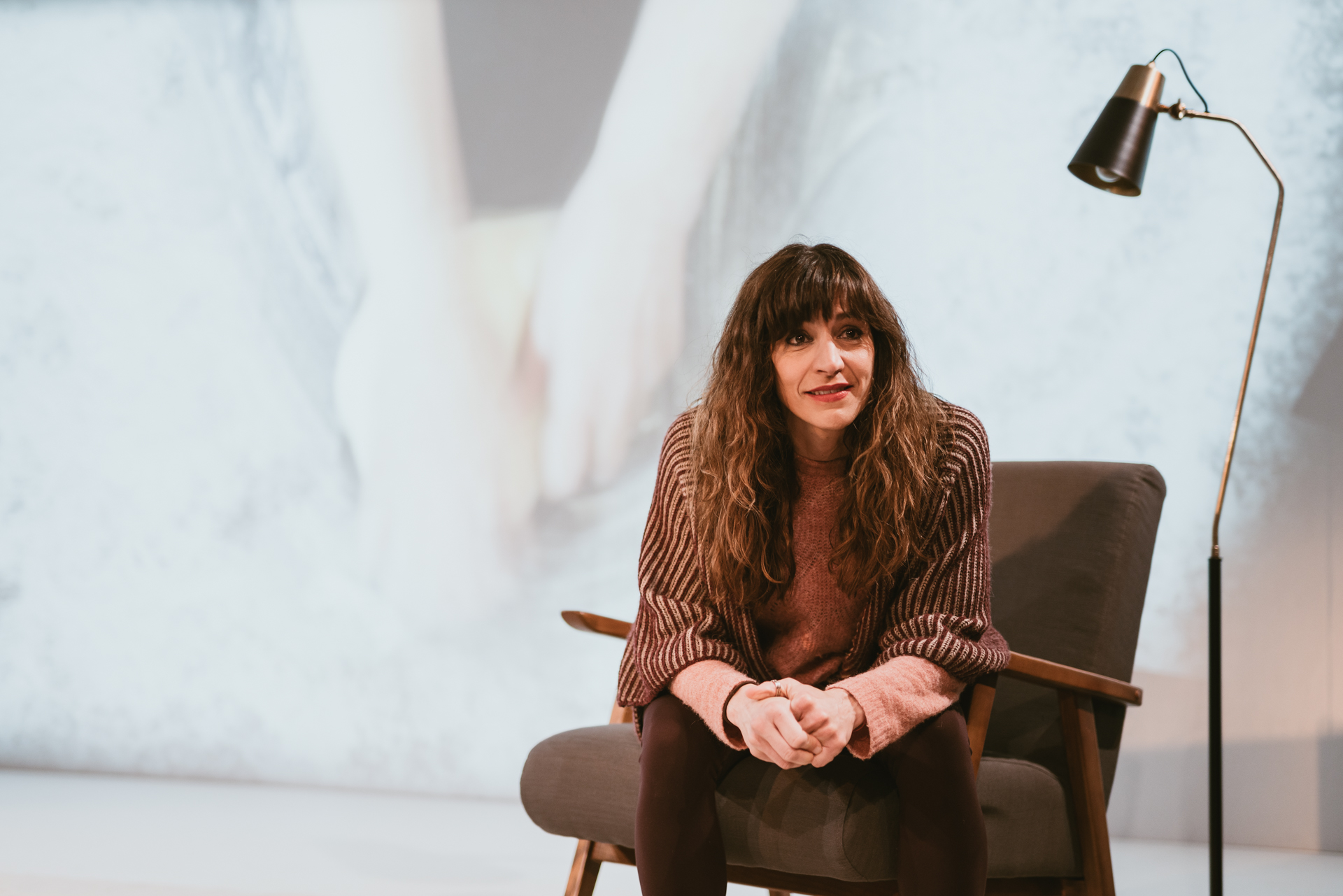 Resulta estimulante que el teatro se haga eco de estas nuevas formas de intrusión en la intimidad. Vivimos rodeados de «viralidad» y eso nos determina hacia situaciones azarosas e incongruentes, también crueles para los protagonistas de esos vídeos que, sin quererlo, se convierten en objeto de mofa, de escarnio o de vergüenza. Desde el ciberacoso al sexting innoble, las escenas sexuales brotan en las pantallas de los móviles con una facilidad pasmosa. En ocasiones, no hay ni tiempo para decir si se ve o no; pues llegan de improviso y en cantidades ingentes. Hemos conocidos varios casos en los últimos años que se han hecho célebres y, alguno tristemente conocido, como el ocurrido en la fábrica de Iveco. Además, en el totum revolutum del «pásamelo», hay filtraciones interesadas de pornografía encubierta para promocionar programas de televisión. Sandra Ferrús se ha metido de lleno en la cuestión y ha escrito un texto que destaca por una frescura y un detallismo muy revelador en los diálogos más cercanos y familiares. Aunque, asimismo, observamos un barullo creciente en el ansia por volcar sueños, recuerdos, saltos temporales y diversos planos concatenados ―y casi simultáneos― que le restan claridad. Es comprensible que así se exprese alguien que está inmerso en un proceso de estrés emocional profundo; pero teatralmente despista nuestra atención. Y otro tema que a mí personalmente me desencaja, en general, cuando la encuentro en alguna obra literaria, es la participación de una psicóloga. Yo creo que los psicólogos normales son antiteatrales, son como un agujero negro que absorbe la incertidumbre, la ficción, el problema y que transforman el acontecimiento dramático en un ejercicio terapéutico. Entendamos que el diálogo con un especialista es una especie de trampa; porque se quiere reconducir por la vía médica un conflicto que, precisamente por ofrecer muchas más perspectivas, debe funcionar sobre un escenario. Digamos que Susana Hernández acomete con sencillez su papel de terapeuta; pero tiene una presencia abusiva en el montaje. Ferrús protagoniza su propia obra, ella es Concha (nombre que da para elaborar toda una exégesis sobre su simbolismo), una mujer de unos cuarenta años que trabaja como panadera. A la actriz la recordamos por su impactante actuación en La calma mágica (2014), de Alfredo Sanzol. Aquí su interpretación es enérgica y muy sincera, con momentos evidentes de decaimiento; pero con una expresiva luminosidad en los ojos que consigue convencer al respetable. Cuando un día se encuentra con la sorpresa de que un antiguo novio de hace quince años, que ahora se ha hecho famoso en un reality, ha filtrado un vídeo donde aparecen follando le alcanza la hecatombe familiar, laboral y, por supuesto, personal. Intromisión flagrante en la intimidad y sin vuelta atrás. El daño ya está consumado y la cadena de comportamientos estúpidos no se hace esperar. Babosos que comentan por la calle, clientes que hacen chistes procaces ignorando los más mínimos principios de la cortesía y de la empatía. La trama se enfoca hacia el interior, hacia la guarida hogareña, hacia el escondrijo. La falta de información acerca de las repercusiones sociales que tiene el caso, nos deja una lectura quizás un tanto pesimista de lo que está pasando en nuestra sociedad con este tipo de asuntos. Y es que, es justo reconocer, que gran parte de la población ha reaccionado. Primero legalmente, pues ya empiezan a salir los primeros imputados. Segundo, porque no han faltado voces muy insistentes que están luchando para acabar con dos lacras: una, la utilización torticera de estos vídeos para acosar públicamente a las mujeres que lo sufren (los hombres salimos mucho mejor parados e, incluso, victoriosos; si no somos el cornudo); y dos, la consideración de la sexualidad femenina; pues la liberación sexual no ha llegado totalmente, ni mucho menos. Y este creo que es el punto más hondo y significativo del texto de Sandra Ferrús, y que mejor está tratado en el espectáculo; o sea, el de la culpa (de origen judeocristiano, por supuesto). El sexo como algo pecaminoso. El sexo como un favor que se hace. El sexo como un placer impropio. El sexo como un rito trascendentalísimo. El sexo como una experiencia de poso amargo. El sexo como una mácula en el expediente de la fémina. Follar follar, lo que se dice follar, no termina de ser un evento plenamente satisfactorio para muchas mujeres. Parece que el polvo y ya está, en el pleno poder de hacer lo que se quiera con tu cuerpo, es un trance agotador. Mucho trabajo por delante, máxime ahora que el feminismo hegemónico, en esta cuestión, sigue zarandeando a las mujeres con una revisión pacata y puritana del asunto. Por eso viene muy a cuento el recuerdo de la protagonista, cuando relata uno de sus primeros magreos con catorce años. Se le puso por delante el Gorila ―Elías González saca su chulería con buen tono―, un tipo mayor, en una discoteca, y las hormonas la dispusieron a una experiencia para la que no estaba preparada (lógicamente). Se cruzan ahí la educación, la costumbre y la presión de una sociedad que favorece saltarse ciertas etapas madurativas por mor de reconducirlo todo en el consumo (de las emociones). Funciona igualmente con sensatez dramatúrgica la relación con el esposo, un Martxelo Rubio que logra una magnífica actuación con ese vaivén de incomprensión que lo zarandea, porque ve que no puede ayudar a su mujer y que, además, él también particularmente sufre la inquina de colegas y allegados. Por otra parte, los hijos, una niña pequeña de tres años y un casi adolescente, Gael, reclaman una atención e, incluso, una explicación. Y ese es un trago para el que los padres no parecen estar preparados. Otro detalle más para la consideración sexual. La presencia del padre ―con César Cambeiro bordando su papel de hombre de campo con sabiduría asentada en el más pu