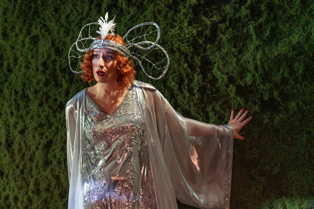 Desde luego, ya adentrados en la fiesta que se celebra en la casa de los Trevélez, cuando aparece el grandioso árbol para un jardín un tanto onírico, el vestuario de Almudena Rodríguez Huertas brilla con esos insectos tan expresivos y metafóricos que llevan las solapas cada uno de los invitados. Por momentos, a través de la música de piano, como un desenfrenado swing, pareciera que nos adentramos en El ángel exterminador. Toda esa gente posee algo de demoniaco en esa pesadilla. Con la iluminación de José Manuel Guerra, como de nocturnidad policial, se llega al drama profundo. El contraste es supino: la ingeniosa comicidad de todas esas respuestas tan afiladas y excesivas en su encadenamiento que nos han divertido anteriormente, pasa a la revelación de los engaños, a la agresividad, a la tristeza; pero también a cierta reparación del daño ejecutado. Por eso, el espectador debe hacer un esfuerzo de abstracción, pues no se transita por los caminos del naturalismo; sino que se ejecutan las distorsiones propias del expresionismo.