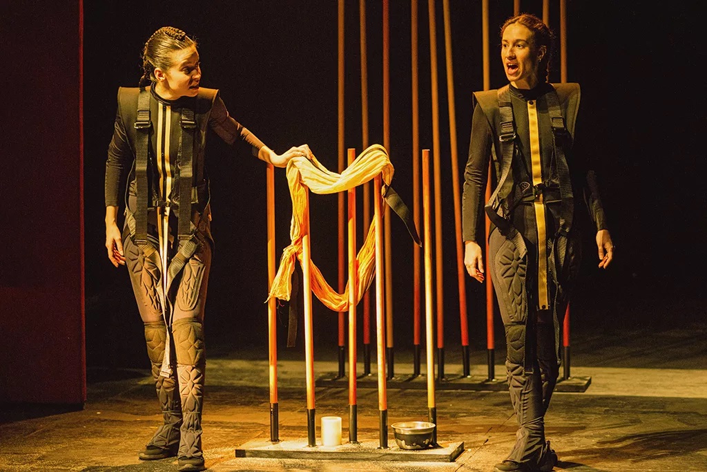 De todas formas, insisto en que la agilidad brindada con todos los cantos que los coros expresan con efusión no sondea la cólera y el espanto. La fluidez es palpable, la concisión también; pero se echa en falta el agón, el enfrentamiento en escena. En definitiva, la potencia musical vertebra demasiado el montaje, en un sentido épico, narrativo. Podemos entender el objetivo de este tipo de proyectos; sin embargo, debemos considerar si, finalmente, la chavalería asume el conflicto y el ideario que transmiten esas tragedias.