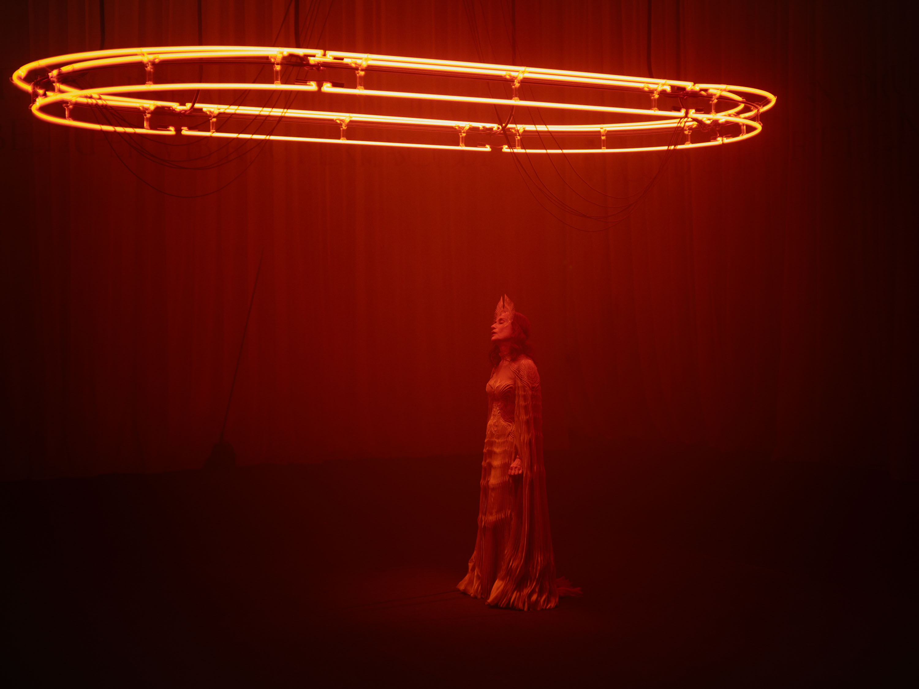 Bajar desde Bros, el anterior proyecto de Romeo Castellucci que recaló en España, a esto es un duro golpe como espectador. Nos situamos de nuevo ante un velo que provoca el sfumato, como ya hizo en Go Down, Moses, y a exprimir a Jean Racine, como pergeñó con gran atractivo Franz Castorf en Bajazet. Ahora regresa con Isabelle Huppert, gran estrella mundial, para subsumirse en el estatismo que de similar manera le impuso Bob Wilson en Mary Said What She Said. Poco importa que sea una reina. La cuestión está en reducirla a impresión pictórica o a sucesión de fotogramas. El esquema argumental será no ya el que propuso el dramaturgo francés, sino el que cada uno lleve aprendido de casa. Ahí está Berenice; pero podría estar una escultura parlante de cualquier diosa o de una burguesa consternada enfundada en el traje que ha diseñado Iris van Herpen, que destaca por sus pliegues como ondulaciones arenosas en el desierto. Más allá del aparataje, esa soledad me trae a la memoria La voz humana, de Cocteau, con aquella alocución en el desconsuelo. Aunque sin tanta pulsión romántica. Al menos en ese espacio tan inmenso y vacío puede abrazarse a su radiador para recuperar el calor perdido (ni siquiera expresa frialdad).