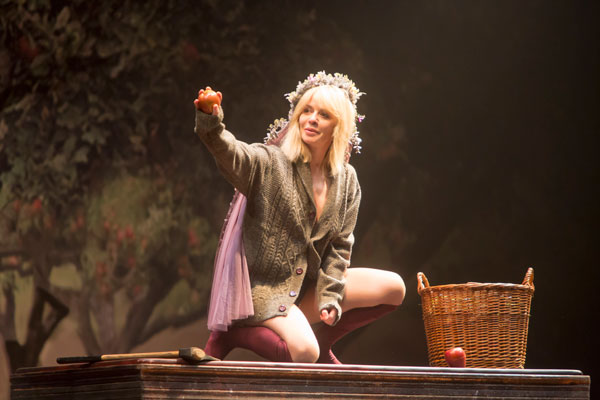 Únicamente por razones de producción puedo justificar un montaje tan desatinado en ritmo y persuasión como el que presenta el tándem Bezerra-Luque, a los que avalan trabajos como El señor Ye ama los dragones, El pequeño poni o Dentro de la tierra. No resulta aceptable que se quiera finiquitar en poquito más de una hora un planteamiento que prometía desmontar el mito de la femme fatale recurriendo a un cuento de ambiente rural y contemporáneo trufado de símbolos que se iban configurando en una asequible alegoría. Consumen el tiempo como si se les hubiera negado algo de margen y no quedara más remedio que lanzar a sus personajes a resumir y explicar una historia que no llega a representarse en su totalidad. Y reconozcamos que la propuesta parece inicialmente muy interesante y atractiva. Puesto que se logra una atmósfera propicia gracias a la sencilla (más de lo habitual), pero efectiva escenografía de Monica Boromello, con un fondo repleto de manzanos que dan profundidad; y, sobre todo, con la iluminación de Felipe Ramos, que acierta a configurar los ambientes idóneos para resaltar lo luminoso en contraposición a la penumbra que se aproxima. Sigue leyendo →
