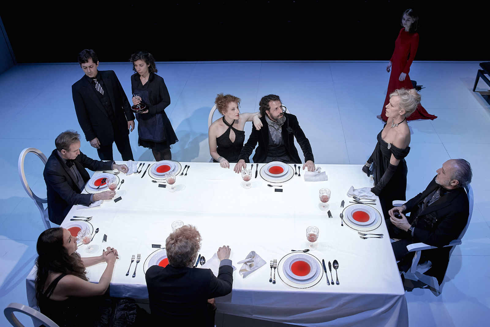 Celebración (Festen) de Thomas Vinterberg fue, como sabemos, todo un acontecimiento cinematográfico; puesto que, además, de su hálito vanguardista, era la primera película bajo el Manifiesto Dogma, el cual, paradójicamente, pretendía regresar a procedimientos «rudos» de hacer cine, como reacción a la desmedida y artificiosa tecnologización. Magüi Mira nos presenta la versión teatral, aunque no podremos obviar la comparación con la versión fílmica. Lo primero que se debe señalar es que estéticamente se ha optado por una depuración de las formas, por un minimalismo maniqueo donde el blanco y el negro predominan ante la presencia fantasmagórica en rojo de Linda. La iluminación fluorescente y aséptica de José Manuel Guerra incide en la excesiva tibieza de algunos personajes. Las gradas enfrentadas de público dejan que los actores se paseen delante de nosotros, a poca distancia. Sigue leyendo