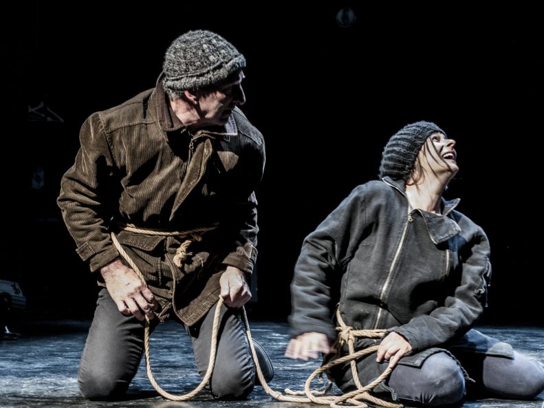 Hace solo un par de meses pudimos ver El fin de la violencia, un vía crucis apocalíptico escrito por Sergio Martínez Vila, un texto con mayor densidad y pretensión que este que nos encontramos ahora. Tanto aquel como En La Ley, viven unidos conceptualmente por el desastre. Aquí, a primeras de cambio ya persuade el hecho de que la Sala Cuarta Pared se haya transformado escenográficamente para introducir al espectador —circularmente— en ese espacio remoto dentro de un bosque, donde apenas suena el canto de los pájaros. Nos hallamos en el 2047, y si hacemos caso a las predicciones de Ray Kurzweil, ya habremos, entre otras cosas, alcanzado la singularidad. Y es que me parece importante, hoy en día, que las obras de ciencia-ficción afinen un poco más en su visión futura; si no quieren desfasarse tanto como aquellas de los años setenta. Es fácil acordarse de Cuando el destino nos alcance, donde una bicicleta estática servía para producir electricidad, como ocurre precisamente aquí. Sigue leyendo →